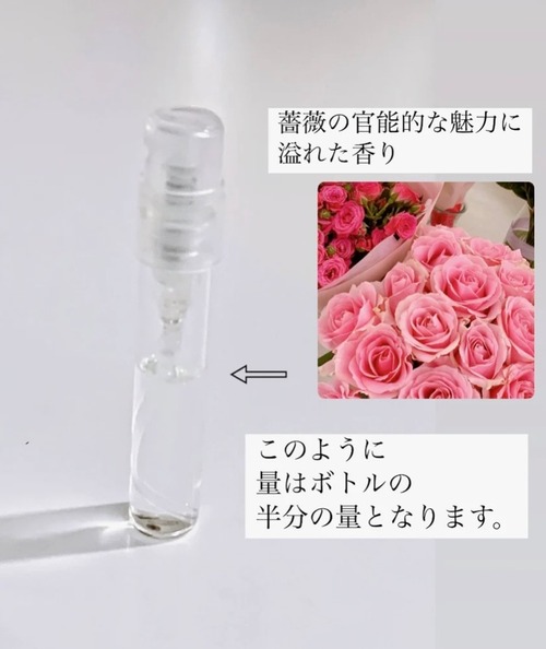 このワンピースに合わせたフレーバースプレーをおつけします。ローズの華やかで上品な香りをメインに、官能的な深みを加えたロマンティックな香りに仕上げました。香るたびに甘く優雅なローズの芳香が広がり、リラックスと幸福感をもたらします。身につけるだけで女性らしい魅力を引き出し、まるで愛されオーラを纏うような感覚に。ボトルの半量で、お試ししやすくなっています。